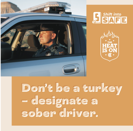 Statewide — Avoid a DUI or crash this Thanksgiving by making sure a sober ride home is part of your menu. From Nov. 20 to Dec. 3, the Colorado Department of Transportation will support the Colorado State Patrol and 68 local law enforcement agencies for The Heat Is On Thanksgiving Weekend DUI enforcement period. Drivers may see saturation patrols, sobriety checkpoints and additional law enforcement officers on duty dedicated to arresting impaired drivers and keeping Colorado’s roads safe.