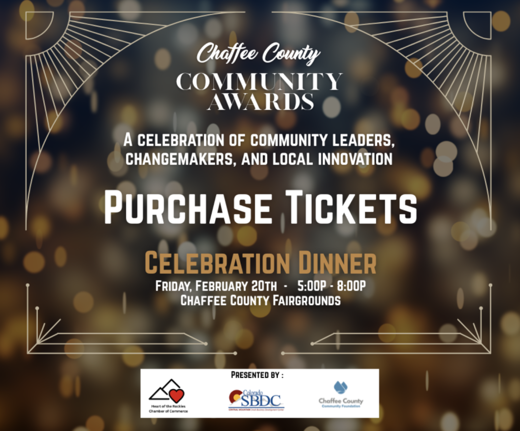 Early bird pricing for the annual Chaffee County Community Awards concludes tomorrow. The event is presented jointly by the Chaffee County Community Foundation, the Heart of the Rockies Chamber of Commerce, and the Central Mountain Small Business Development Center.