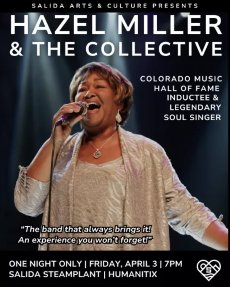 Salida, Colorado — City of Salida Arts & Culture invites the community to an unforgettable night of music and dancing when Hazel Miller & The Collective take the stage on Friday, April 3 at 7:00 p.m. at the historic Salida SteamPlant Event Center, located at 220 W. Sackett Ave in Salida, Colorado. Doors open at 6:00 p.m.